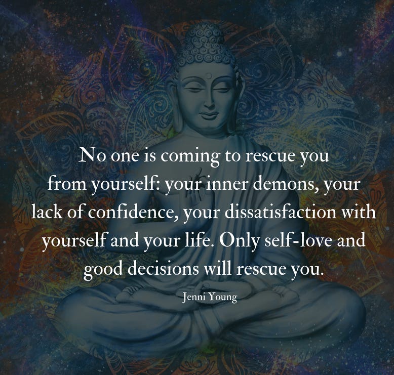 There is no “I.” While we need some kind of term to refer to ourselves in our daily lexicon, there simply is no self. And what do people generally consider as the sources of self? Their physical body and senses, perceptions, feelings, strivings (i.e. ambition), and consciousness, or a fundamental awareness of everything mentioned. The only problem is, each one of these elements change. Every single one. Not one is permanent. Which means that if these are the elements that one generally believes to comprise the self, but they only exist for a moment in time (just think how your emotions fluctuate, how your body changes, feelings ebb and flow, the 12-year-old you is different from the 53 year old you), then that “self” doesn’t actually exist. Deep shit, I know. The beauty of this sense of no self (thank you, dear Buddha) is that when you embrace this reality, there’s a sea of acceptance waiting for you because you’re no longer stuck fighting for control of happiness, stress-free, pain free, anxiety-free. Because you’re already free.